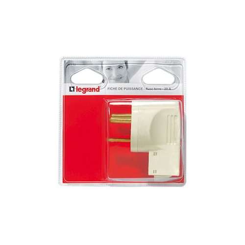 Legrand | Fiche de puissance mâle 20A -sortie câble par dessous -2 broches -blister -blanc - Ref : 090113