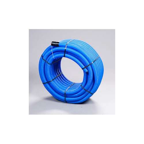 FOURREAU 50 BLE 25M P24 : protection de câbles et canalisations enterrés pour réseaux eau potable, annelé à l'extérieur, lisses à l'intérieur afin de permettre un bon glissement du câble, résistant aux chocs et à l'écrasement, compact et pa