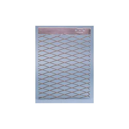 Grille de terre. Pour écoulement à la terre des courants foudre ou défaut 50 Hz. Evite formation cavités nuisibles à la surface contact. Bande 42mm avec trous, encoches pour raccordement au câble terre. Acier galvanisé. Dim: 1,2x0,92 m