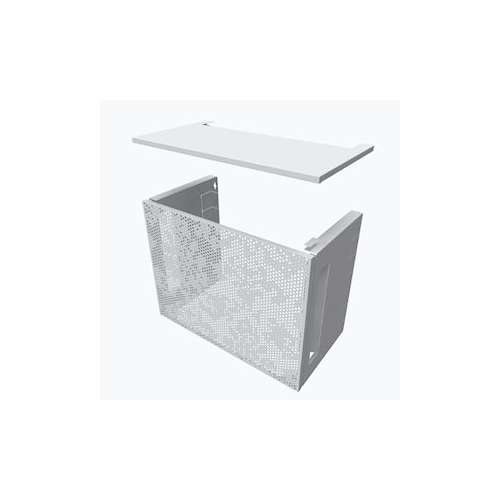 Habillage de ventilation gamme initial taille 1 avec capot haut - Blanc RAL 9010. L'habillage est composé d'une face avant perforée (baroque), d'un côté gauche, d'un côté droit et d'une traverse haut ou bas.