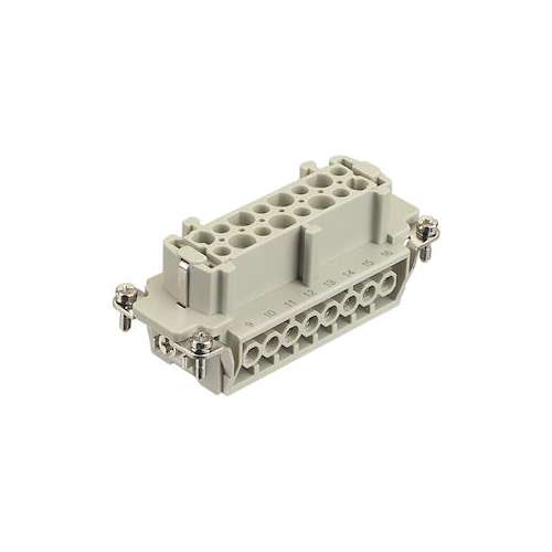 Inserts, Raccordement à vis, Femelle, Polycarbonate (PC), RAL 7032 (gris silex), Intensité nominale: '16 A, Taille: 16 B, Contacts: 16, Section de fil du conducteur: 0.75...2.5 mm², Alliage de cuivre, Plaqué argent