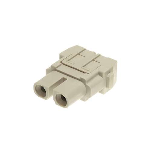 Module Han 40 A, Raccordement à vis axiale, Femelle, Contacts: 2, Section de fil du conducteur: 6...10 mm², Intensité nominale: '40 A, Polycarbonate (PC), RAL 7032 (gris silex), Alliage de cuivre, Plaqué argent