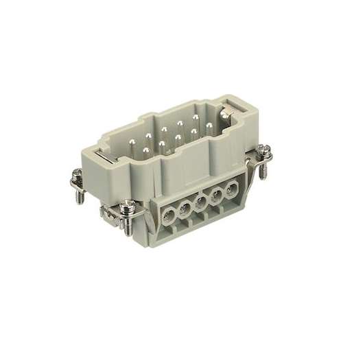 Inserts, Raccordement à vis, Mâle, Polycarbonate (PC), RAL 7032 (gris silex), Intensité nominale: '16 A, Taille: 10 B, Contacts: 10, Section de fil du conducteur: 0.75...2.5 mm², Alliage de cuivre, Plaqué argent