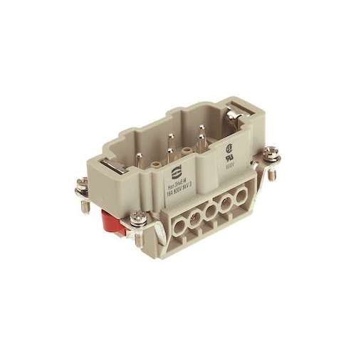 Inserts, Raccordement à vis, Mâle, Polycarbonate (PC), RAL 7032 (gris silex), Intensité nominale: '16 A, Taille: 10 B, Contacts: 3, + 2 contacts de sécurité supplémentaires, Section de fil du conducteur: 0.75...2.5 mm², Alliage de cuivre,