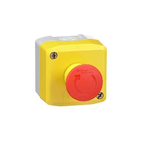 Schneider Electric | Harmony - boite arrêt d'urgence jaune - bouton rouge rotation - 1NO+1NC - Ref : XALK178EH7
