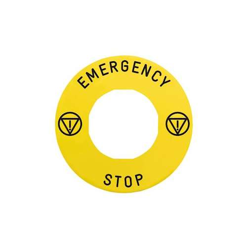 Schneider Electric | Harmony étiquette circulaire D60mm jaune logo EN13850 EMERGENCY STOP pr ZBZ3605 - Ref : ZBY9330T