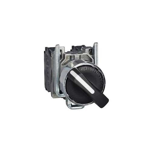 Harmony XB4 - bouton tournant - à manette - Atex poussières - noir - D=22 - collerette dépassante - métal chromé - 3 positions - fixes - 2F - fixation D=22 - raccordement par vis-étrier