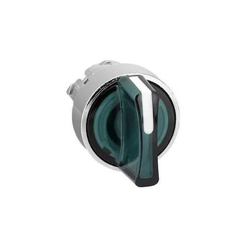 Harmony XB4 - tête de bouton tournant - à manette - lumineux - DEL intégrée - vert - D=22 - collerette dépassante - métal chromé - 3 positions - fixes - fixation D=22