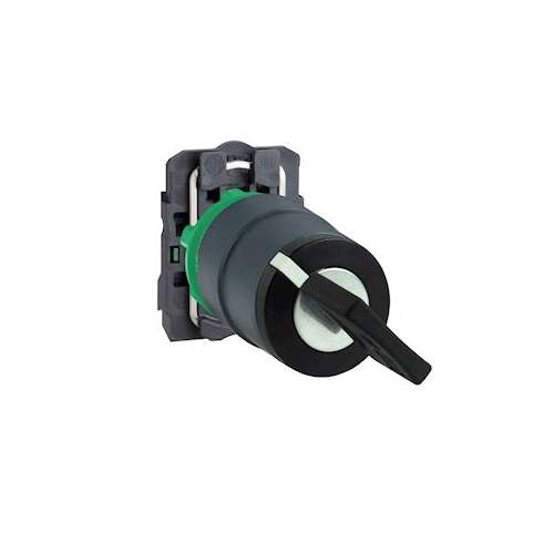 Harmony XB5 - bouton tournant - à clé N°455 - noir - D=22 - collerette dépassante - plastique noir - 2 positions - fixes - retrait de la clé à gauche et au centre - 1F - fixation D=22 - raccordement par vis-étrier