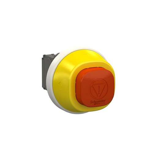 Harmony XB5 - bouton arrêt d'urgence avec anneau lumineux - blanc et rouge - pousser tourner carré - collerette conique - plastique jaune - 2O+1F - 24VCC - fixation D=22