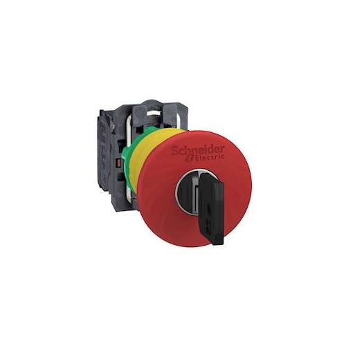 Harmony XB5 - bouton arrêt d'urgence - à clé N°455 - rouge - D=40 - collerette dépassante - plastique noir - 1O+1F - fixation D=22 - raccordement par vis-étrier