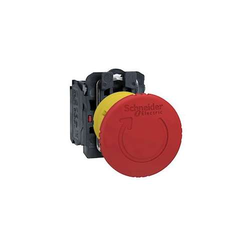 Harmony XB5 - bouton arrêt d'urgence - pousser-tourner - rouge - D=40 - collerette dépassante - plastique noir - 1O - fixation D=22 - raccordement par vis-étrier