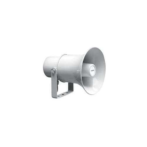Haut-parleur à chambre de compression 10W en 100V. Utilisation en intérieur ou extérieur. Gris clair RAL7035. Livré avec support de montage. Câble de raccordement de 2 mètres.