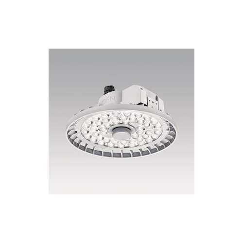 Luminaire pour plafonds de grande hauteur, avec suspension en un point IP65 et optique extensive. Driver gradable DALI, pour 220-240V, alimentation 50/60 Hz. THD20%. IK08. Corps : aluminium injecté. Lentilles : Polycarbonate (PC).