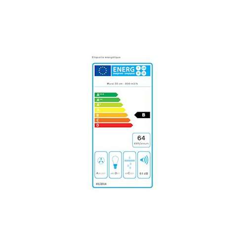 Hotte murale FALMEC POLARLI1130, 35cm, commandes électroniques, finition Inox Brossé, moteur 800m3/h, 4 vitesses, Débit d'air boost = 710m3/h, Puissance acoustique max = 61dB. Eclairage LED. Classe énergétique : B