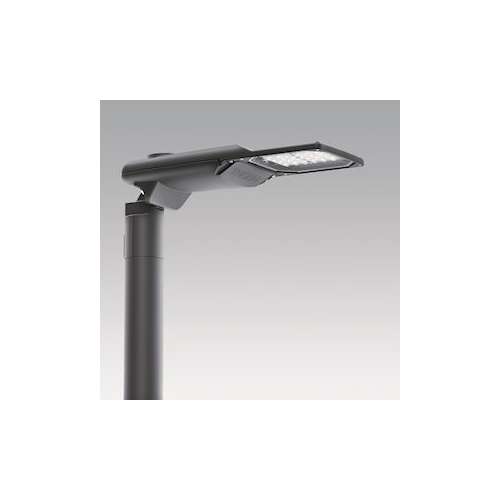 Lanterne d'éclairage routier LED moderne (Small) avec 24 LED alimentées en 500mA avec une optique Route étroite. Driver. Classe électrique II, IP66, IK09. Corps : aluminium (EN AC-44300) injecté, thermopoudré gris anthracite 900 sablé texturé. Emmanchement : aluminium (EN AC-44300), injecté thermopoudré texturé gris anthracite 900 sablé. Fermeture : verre ép. 5 mm. Fixations : Acier inox. Livré avec un adaptateur d'emmanchement Ø 60 mm qui convient pour montage top (inclinaison 0°/5°/10°/15°/20°) ou latéral (inclinaison -15°/-10°/-5°/0°/5°/10°/15°). Equipé d'un 50% circuit de réduction de puissance, qui entre en vigueur 3 heures avant et 5 heures après un minuit calculé. Il peut être désactivé à l'installation avec un interrupteur interne facilement accessible. Livré avec LED 3 000 K. Protection contre la surtension : mode commun à une impulsion 10 kV et mode commun multi-impulsions 8 kV et mode différentiel multi-impulsions 6 kV. Si un système DALI permanent est connecté, mode différentiel et mode commun multi-impulsions 6 kV. Dimensions : 571 x 224 x 114 mm Puissance du luminaire: 38 W Flux lumineux du luminaire: 5091 lm Efficacité lumineuse du luminaire: 134 lm/W Poids : 5,53 kg Scx : 0.054 m²