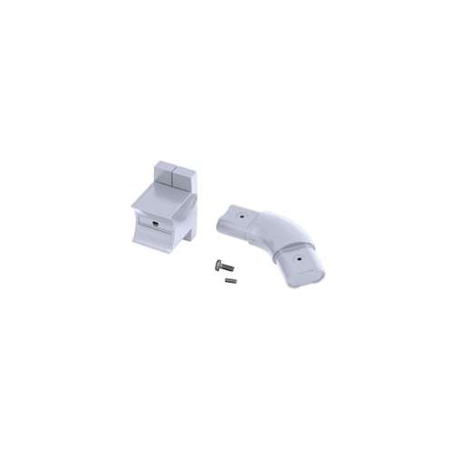 Jonction 135DEG polymère blanc avec 1 fixation murale aluminium époxy blanc pour tube elliptique 38 x 25 mm du kit Arsis. Visserie fournie.
