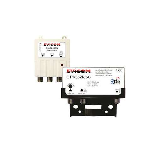Evicom | Kit préamplificateur 30 dB + alimentation 24 Vcc 2 sorties - Ref : EKEV352R/5G