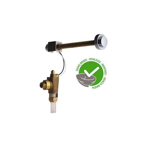 Le kit complet chasse P1000 XL 4l TC prêt à poser pour cuvette sans bride comprend: 1 commande à travers cloison 15 à 200 mm, 1 robinet d'arrêt, 1 robinet de chasse P1000xl 4l, 1 tube coudé PVC, 1 nez de jonction. Alim: équerre mâle G3/4''.