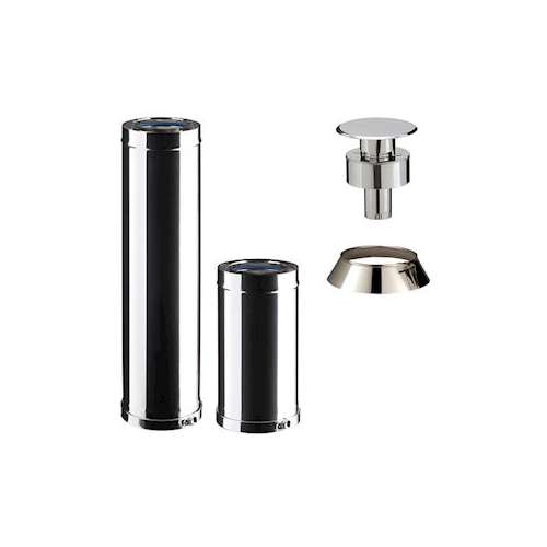 Le kit toit terrasse est constitué d'éléments droits (1 x 950 mm, 1 x 450 mm), d'un chapeau (CTIV) et d'une collerette d'étanchéité.Hauteur utile : 1100 mm
