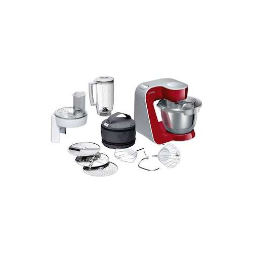 BOSCH - Kitchen machine MUM5 - rouge foncé / silver - 1000W - 7 vitesses + pulse + LED - bol mélangeur inox 3,9L - fouet mélangeur - fouet batteur - crochet pétrisseur - blender 1,25 L - 3 disques - trousse de rangement des accessoires - mo