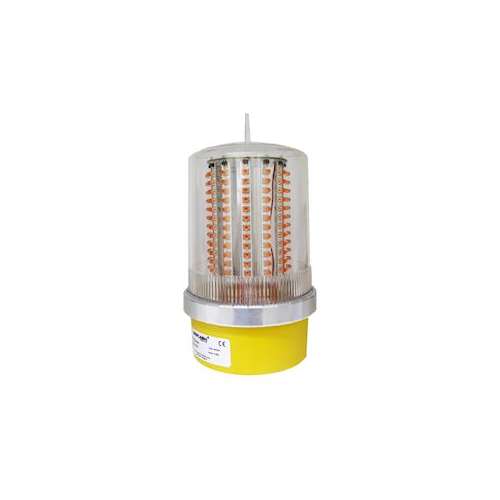 Avertisseur lumineux - Feu à LED - BALISE BASSE INTENSITE - Fixe - Puissance lumineuse 195 LED - 10 Cd - 230VCA/VCC - Rouge - Corps & dome en polycarbonate résistant aux UV - Conforme ICAO - Balisage aérien - IP66 - Diam 115 x H 205 mm.