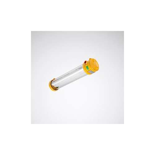Luminaire tubulaire LED| antidéflagrant| tube en verre de borosilicate. À utiliser dans des zones présentant des risques liés à une atmosphère explosible (ATEX 2014/34/EU): Marquage EX « Gaz » : Ex II 2G Ex db IIC T6 Gb (Zone 1) - - Marquage EX « Poussières » : Ex II 2D Ex tb IIIC T85°C Db (Zone 21) - Convenant à une utilisation en intérieur et en extérieur| notamment dans des zones à température ambiante élevée < 55°C. Satisfaisant aux exigences des subdivisions de gaz IIA| IIB| IIC. Avec répartition lambertienne des intensités lumineuses. Flux lumineux du luminaire 2650 lm| puissance raccordée 22|00 W| rendement lumineux du luminaire 120 lm/W. Teinte de lumière blanc neutre| température de couleur (CCT) 4000 K| Tolérance de localisation chromatique (initialement MacAdam) 3 SDCM| indice général de rendu des couleurs (IRC) Ra > 80. Durée de vie assignée moyenne L80(tq 55 °C) = 50.000 h. Corps de luminaire| constitué d'un tube en borosilicate de 9 mm ; embouts frontaux en alliage d'aluminium. . Platine-appareillage à l'intérieur| en tôle d'acier| laquage par poudre blanc. Joints en butadiène-acrylonitrile (NBR pour nitrile butadiene rubber en anglais). Dimensions (L x l): 750 mm x 157 mm| hauteur du luminaire 197 mm. Classe électrique (EN 61140) : I| indice de protection (norme EN 60529) : IP66| degré de résistance aux chocs selon la norme CEI 62262 : IK05| température d'essai au fil incandescent selon la norme CEI 60695-2-11 : 850 °C. Température ambiante admissible (ta):
