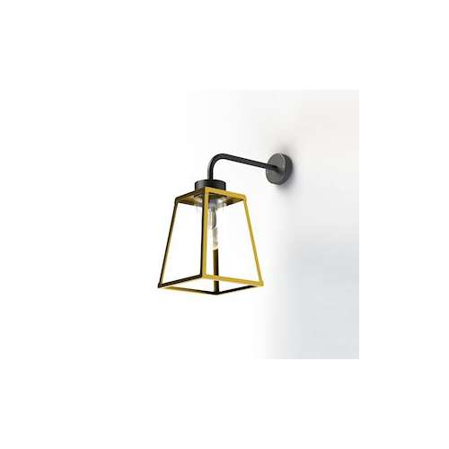 Applique descendante LAMPIOK 1, E27, IP65, classe 2, diffuseur Verre clair. Matière cage : laiton vernis teinté 070. Matière potence : aluminium. Teinte RAL 7021 Gris noir 107