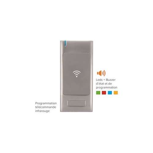 Lecteur RFID AS3 Wiegand 26 bits, en métal, IP64, EM MARIN + HID Proximity 26-37 bits 125 KHz + MIFARE (Classic, DESFire, Ultralight) 13,56 MHz, raccordement bornier à vis, 12V à 24V DC, voyants d'état et buzzer pilotables