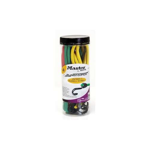 Master lock europe | Lot de 6 tendeurs à crochet double (2 x 60 cm + 2 x 80 cm + 2 x 100 cm) - Ref : 3040EURDAT