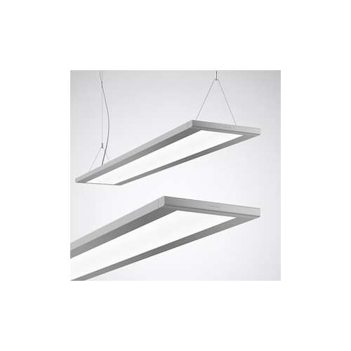 Module de luminaire d'utilisation polyvalente pour luminaires suspendus et plafonniers. Complétés par des accessoires à commander séparément, les modules se transformeront en luminaires individuels ou en applications en ligne continue, à surface de sortie de lumière continue pour un montage suspendu ou en saillie. Combiné à des accessoires à commander séparément pour l'application souhaitée, le module convient à un montage suspendu et en saillie. Application en ligne continue suspendue, réalisable en diagonale au moyen d'un raccord orientable à commander séparément. Avec microprismatique CDP haute efficacité. Pour une application en luminaire suspendu à répartition directe/indirecte des intensités lumineuses. Partage de la répartition totale des intensités lumineuses (directe/indirecte) : 40% / 60%. - Pour une application en plafonnier à répartition essentiellement directe des intensités lumineuses et composante indirecte pour l'éclairage du plafond. Évaluation de l'éblouissement (EN 12464-1) selon UGR < 16. Compatible avec les postes de travail informatisés selon la norme EN 124641. Effet de lumière homogène. Système LED disposant d'une LED inclinée, positionnée latéralement par rapport à l'ouverture de sortie de lumière et d'un système à compartiments, assurant une réflexion/transmission très efficace de la lumière. Flux lumineux assigné de l'application en luminaire suspendu 4000 lm, Flux lumineux assigné de l'application en plafonnier 3500 lm, puissance raccordée 26,00 W, Teinte de lumière blanc neutre, température de couleur (CCT) 4000 K, indice général de rendu des couleurs (IRC) Ra > 80. Durée de vie assignée moyenne L80(tq 25 °C) = 50.000 h. Corps de luminaire en profilé d'aluminium extrudé. Embouts frontaux en aluminium moulé sous pression. Luminaire, laquage par poudre sans solvants, gris argent. (RAL 9006). Dimensions (L x l): 1190 mm x 240 mm, hauteur du luminaire 20 mm. Température ambiante admissible (ta):