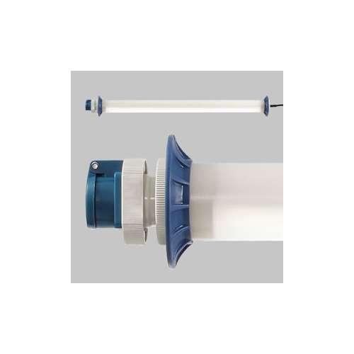 Luminaire tubulaire, 230V, IP54, classe I, 1 panneau LED, 5m de câble, protecteurs (bleu), PC + fiche F