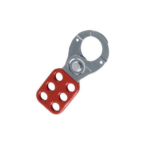 Mâchoire de consignation pour 6 cadenas en acier haute résistance recouvert de vinyle rouge. D= max. de l'anse : 9.5 mm. Trous pour cadenas D= 11 mm.