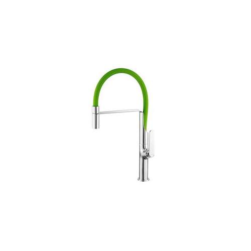 Mitigeur / Robinet pour évier. Bec 1 jet sur flexible vert. Corps chromé. Cartche D= 25mm.