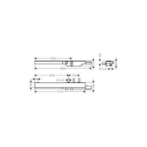 - possibilité de contrôler une douche externe ou un remplissage de baignoire par raccordement encastré G ½