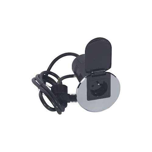 Module de bureau encastré avec 1 prise 2P+T et chargeur USB - avec cordon H05VVF 3G 1,5mm² longueur 2m et pince pour une fixation sans outil - avec clapet de protection à fermeture automatique - métal - conforme à la norme NF C 61-314