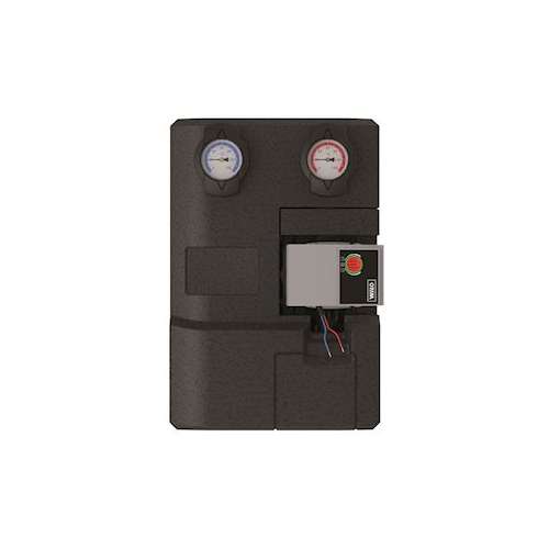 Entièrement monté, isolé et testé ; équipé d'une pompe électronique à indice d'efficacité énergétique EEI < 0,23, de thermomètres intégrés dans les vannes d'isolement, et d'un clapet antiretour intégré dans la vanne de retour. Son numéro de colis est le EA143.