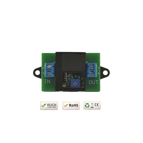 •Multi-tensions 12 à 24 V DC •Temporisation réglable de 1 à 60 secondes •Pour verrouillage à rupture de courant (commande par rupture de courant) Relais temporisé, TM - 12 à 24 V AC/DC , TM200S - Caractéristiques : •Tension d'alimentation : 12 à 24 V AC/DC •Consommation au repos / en action : 2 mA / 75 mA •Commande : Par coupure de tension - Pouvoir de coupure max 24 V DC / 5 A •Sortie : Sortie alimentée •Plage de temporisation réglable : De 1 à 60 secondes •Directives / Normes : DIRECTIVE 2014/30/UE - EN 55032: 2015 / A11: 2020 - EN 55035: 2017 / A11: 2020 - EN IEC 61000-3-2: 2019 - EN 61000-3-3 : 2013 /A1: 2019 •Dimensions (L x h x p) : 58 x 29 x 15 mm •Poids brut / Poids net : 0,02 Kg / 0,013 Kg •Conditionnement par : 1 ou 10 ou 200 •Code douane / Code DEEE : 8536419089 / P12.01 •Code EAN 13 : 3760273111472