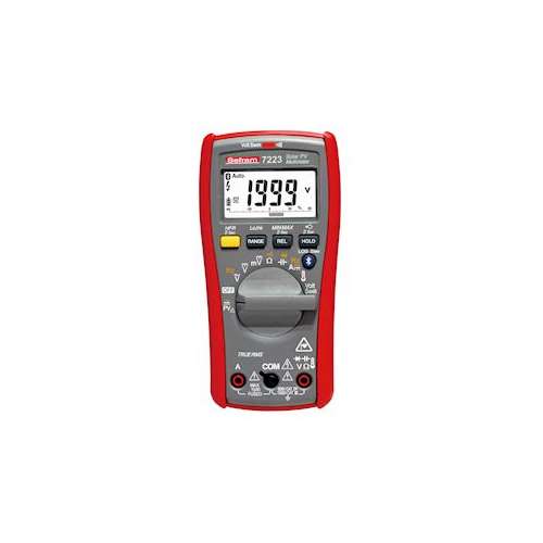 Les multimètres de la série SEFRAM 722X sont dotés d'une interface simple et intuitive pour accéder aux différents menus et aux fonctions évoluées. Toutes les mesures de base (V, A , …) restent en accès direct. Le multimètre SEFRAM 7223 intègre un datalogger permettant l'enregistrement de 4000 valeurs, en pouvant paramétrer la cadence de mesure. Cette fonction sera très utile pour la surveillance de paramètres. Avec le multimètre SEFRAM 7223, vous disposerez d'une fonction de mesure de tension sur les panneaux photovoltaiques. Mesurez des tensions jusqu'à 1500V AC et 2000VDC en toute sécurité grace à l'accessoire optionnel SA163. • Mesure des tensions jusqu'à 1000V TRMS AC et 1000V DC • Mesure des tensions sur les panneaux photovoltaiques jusqu'à 1500V AC et jusqu'à 2000V DC avec le cordon SA163 • Mesure des courants jusqu'à 10A • Mesure de fréquence et capacité • Mesure de résistance jusqu'à 40 Mohms • Test de continuité avec buzzer • Détection de tension sans contact • Connectivité Bluetooth® • Mesure de température avec thermocouple type K • Afficheur LCD double, avec bargraph et rétro-éclairage • Fonction datalogger • Application Android et Ios: SEFRAM Connect (gratuite) • Sécurité: 600V CAT IV et 1000V CAT III