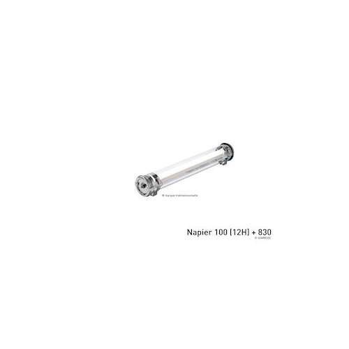 Luminaire tubulaire NAPIER 133 - Vasque Ø135 mm en verre borosilicaté - Flasques inox en forme de 1/2 tore creux - Diffuseur optique - Toute partie métallique externe en inox 316L et visserie en inox A4 - Enveloppe monobloc à haute résistance mécanique et à étanchéité renforcée - Platine d'appareillage en tôle d'acier laquée blanche - Dissipateur thermique en aluminium - Joints moulés en EPDM - Modules LED démontables à haute efficacité (IRC>80, 70 000h L80/B10@Tmax) - Flux lumineux: 9250 lm - Température de couleur : 4000K - Light mixing chamber - Driver LED robuste spécial industrie, non réglable - Diamètre : 133 mm - Longueur hors tout: 1587 mm - Entrée de câble par 1 presse-étoupe en polyamide (capacité : Ø5 à 12 mm) - Fixation par colliers renforcés en inox à grenouillère à entraxe variable et permettant une orientation sur 360° - Maintenance par desserrage des 2 vis de fermeture, démontage du flasque mobile et extraction de la platine - Garantie : 8 ans, en usage 24/7 à temp max - Température d'utilisation : -20°C +50°C - Indice de protection : IP66/IP68/IP69K - Résistance aux chocs : IK07 - Classe I - Tension d'alimentation : 220-240V 50/60Hz - Consommation: 67 W - Efficacité lumineuse: 138 lm/W - Résistance à la surtension: 320 V AC, 48 h (Supporte les pics de tension < 4 kV) - Facteur de puissance > 0,95 - THD: 6,5 % - Risque photobiologique : Groupe 0 - Résistance au fil incandescent : Ininflammable - Résistance aux vibrations : Conforme aux conditions sévères de l'EN 60598-1 (tests selon CEI 60068-2-6) - Poids: 10,5 kg - Conçu et fabriqué en France