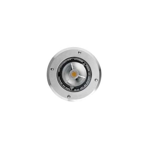 Encastré au sol, 9,1W, IP67, IK10, 3000K, anneau AISI 316L, on-off, faisceau 40D, boite inclue, câblage 50 cm, piétonnable, charge 2000 kg, 20km/h