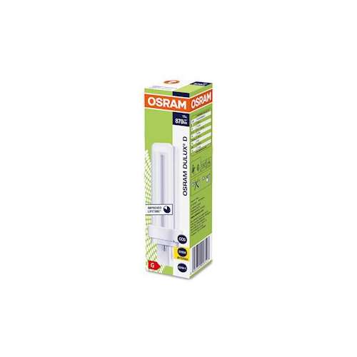 LAMPE FLUORESCENTE COMPACTE OSRAM DULUX D 2 PIN - Starter intégré - 13W - 900lm 2700K 10000h - IRC80 - ø34 x 138mm - Pour alimentation conventionelle - Classe Energie G - Culot G24d-1