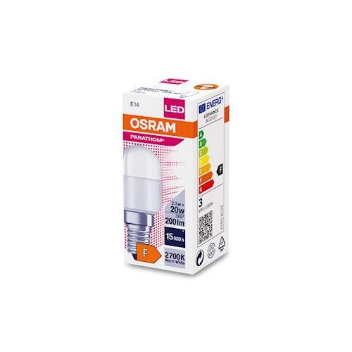 LED SMD OSRAM - PARATHOM - SPECIAL T26 20 Dépolie - E14 - 2,3W Equivalence 20W - 200lm - Non Gradable - ø25 x 63mm - ON/OFF x 100 000 - 2700K - 15000h - Classe F - Garantie 4 ans