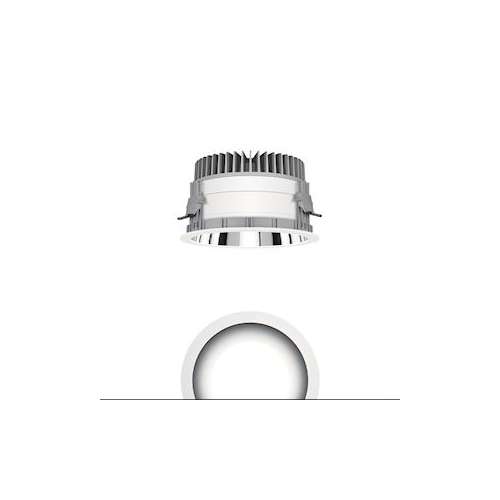 Plafonnier encastré à LED (luminaire complet) ; luminaire à LED « StableWhite » à distribution symétrique extensive avec efficacité maximale du luminaire et technique lumineuse optimale ; équipement : 19 W LED840 ; Rendu des couleurs Ra > 80, température de couleur 4000 K (blanc neutre) ; Tolérance de la couleur (MacAdam intial): 3 ; Flux lumineux du luminaire: 2419 lm, Efficacité lumineuse du luminaire: 127 lm/W ; durée de vie : 50000 h avec 85% du flux lumineux ; avec unité à ballast séparée Luminaire pilotable via DALI (via DALI uniquement) ; avec unité réflecteur haut de gamme se fixant sur la chambre lumineuse modulaire à LED grâce à la fermeture à baïonnette ; chambre lumineuse à LED extrêmement efficace intégrée dans la gestion thermique passive optimisée en aluminium injecté sous pression ; réflecteur : lisse, aluminisé, haut brillant, sans irisation ; réflecteur/collerette formant une unité en Polycarbonate (PC) de haute qualité, résistant aux UV ; Collerette blanche ; collerette d'encastrement en Polycarbonate renforcé aux fibres de verre (PC), gris ; montage rapide sans outil de l'unité d'éclairage grâce à la fermeture à baïonnette ; IP44_IP20 ; câblage du luminaire sans halogène ; raccordement : Bornier à 5 pôles à enfichage, possibilité de câblage en dérivation ; tension secteur : 220-240V / 0/50/60Hz, compatible avec une unité centrale de batterie de 220 Vcc ; montage rapide sans outil à l'aide de clips de fixation anti-dérapants pour épaisseurs de plafond de 1 à 40 mm ; découpe du plafond : 200 mm, profondeur d'encastrement : 129 mm ; poids : 1,39 kg ; Note : UGR < 19 (réflecteur aluminisé) pour les applications dans les bureaux selon la norme EN12464