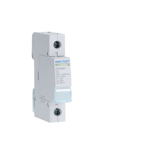 Hager | Parafoudre 1P débrochable 40KA type 2 avec voyant fin de vie - Ref : SPN140C