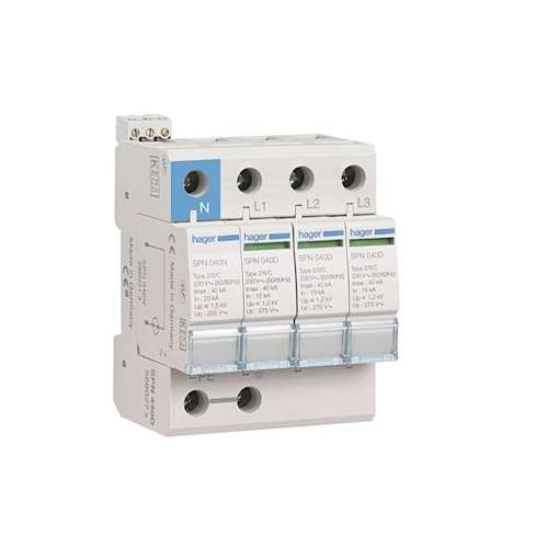 Hager | Parafoudre 4P débrochable 40KA type 2 avec voyant fin de vie - Ref : SPN440D