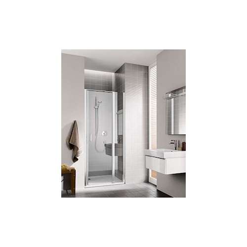 Porte pivotante avec élément fixe, pivots à gauche, élément fixe à gauche, Série CADA XS, CC1GL10020VPK, largeur 1000 mm, hauteur 2000 mm, Argent poli, Verre clair traité anticalcaire