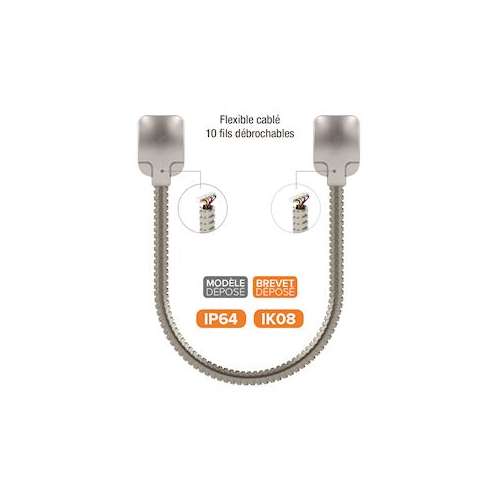Passage de câble DLX, raccordement borniers (pose et dépose facilitées), pose en applique, antivandale, longueur 40 cm, D= extérieur 12 mm / D= intérieur 9,5 mm, Gaine acier zingué, IP64, IK08