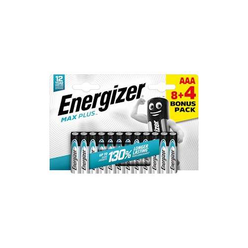 Notre pile alcaline AAA qui dure le plus longtemps. Puissance longue durée et innovation, les piles AAA Energizer MAX PLUS conservent leur énergie pendant 12 ans dans leur emballage, pour une énergie toujours disponible. Avec ces piles Energizer, vos appareils les plus exigeants, tels que les appareils photo, les tondeuses personnelles, les consoles de jeux portables et les manettes, sont alimentés pour longtemps.