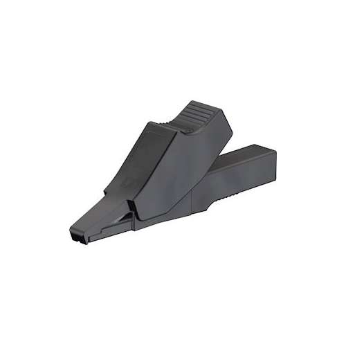 Pince crocodile en laiton parfaitement isolée. Mâchoires acérées et surface de contact pour conducteur fin. Equipée, dans le corps isolant d'une douille rigide D= 2 mm, adaptée à la connexion de fiches D= 2 mm élastiques à fourreau rigide.